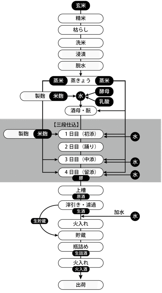 三段仕込みの後に、四段、五段と仕込みを重ね、回数を重ねる度に甘味が増します。十段仕込みの蜂蜜のように甘い日本酒も存在します。