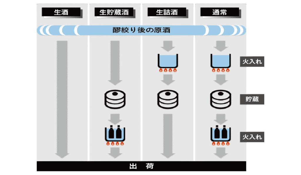 一般的には上槽後の貯蔵前に1回、瓶詰め出荷前に1回、合計2回、「火入れ」という過熱殺菌を行う。